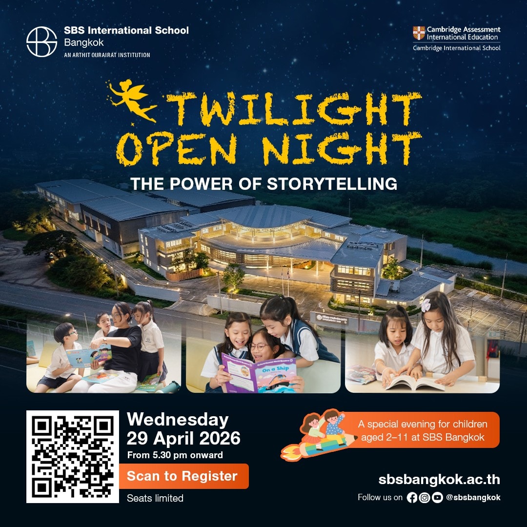 Set against the unique atmosphere of our campus at twilight, this event invites prospective families to explore how storytelling, creativity, and meaningful learning come to life at SBS Bangkok. It is a wonderful opportunity to experience our school environment, meet our leadership team, and see how children are inspired to grow with confidence, curiosity, and joy.